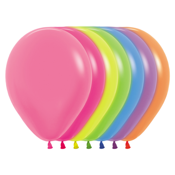 Sie brauchen Luftballons, die was aushalten? Unser Ballon in der Farbe Neon Mischung: Pink 212, Gelb 220, Grün 230, Blau 240, Orange 261 hält mehrere Tage Form und Farbe – 100% Naturlatex, vom TÜV Rheinland zertifiziert.
