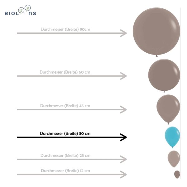 Unsere Bioloons® bestehen aus 100% Naturlatex. Das bedeutet: Sie sind vollständig biologisch abbaubar und frei von Plastik. Ein gutes Gewissen feiert mit!
