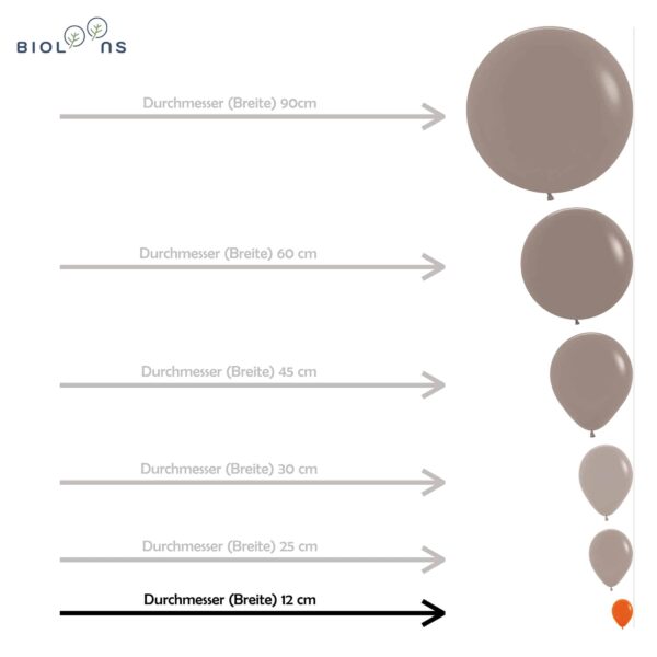 Bio Mini-Luftballon 12cm: 50 Stück in Metallic Mischung: Pink metallic 512, Rot metallic 515, Gelb metallic 520, Grün metallic 530, Blau metallic 540, Violett metallic 551, Orange metallic 561. Er kann mit Luft gefüllt werden, und ist nicht schwebefähig. Unsere Natur-Luftballons ohne Plastik, Weichmacher oder Füllstoffe.