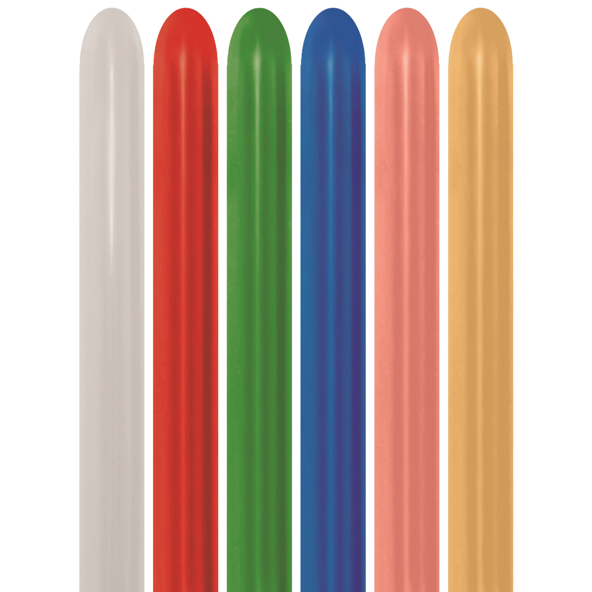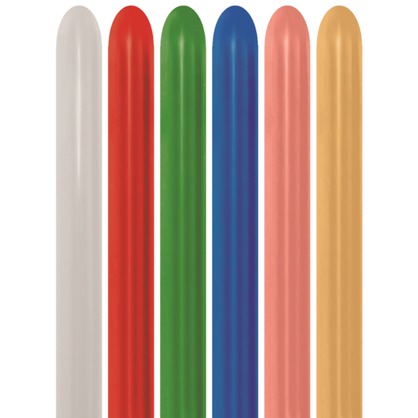 Bio Modellierballon 260: 100 Stück in Metallic Mischung: 515 rot metallic, 530 grün metallic, 540 blau metallic, 570 gold metallic, 481 samt silber. Die Länge des aufgeblasenen Modellierluftballons beträgt 150 cm, der Durchmesser 5 cm. Er kann mit Luft gefüllt werden, und ist nicht schwebefähig. Unsere Natur-Luftballons ohne Plastik, Weichmacher oder Füllstoffe.